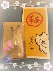 素敵なプレゼントをありがとうございます。ピアスは直ぐにつけ、「水引アクセサリー」の可愛いデザインにはしゃいでいます。ハンドメイドのあたたかさが伝わる素敵なデザインです。選んで来て下さり、ありがとうございました。大切にしますね。