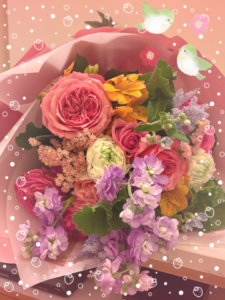 こんばんは!(お馴染みのご指名様方、ありがとうございました。) お部屋に入ると、ご指名様の素敵な笑顔!そして花束が目に入りました。 いつも優しさいっぱいで出迎えて頂き、一瞬で幸せな気持ちになりました。お優しいお心遣いを、いつも本当にありがとうございます。 ご指名様から花束のお花の説明があります。楽しく伺います。お花が好きなご指名様です。楽しそうな表情に、こちらも嬉しくなります。薔薇やストックで春を感じるアレンジです。とても可愛らしい〜 スイーツを頂く「女子会」のような時間もありました。甘くてとても美味しかったです。ご馳走様でした。今回はマッサージをする時間を取ることができました。いつもお優しいご指名様なので、私からお礼の気持ちを込めて〜。 今回もずっと紳士的に接して頂き、心より感謝申し上げます。いつも長い長いお時間のお付き合いを頂き、大変恐縮しております。ありがとうございました。 小嶋美玲