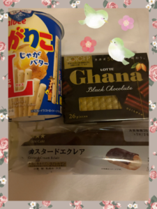 今夜はお泊まりでしょうか。たくさんのお菓子から、お土産を3つも選ばせて頂きました。 先程、夕食後のデザートとして「エクレア」を頂きました。 ご馳走様でした。